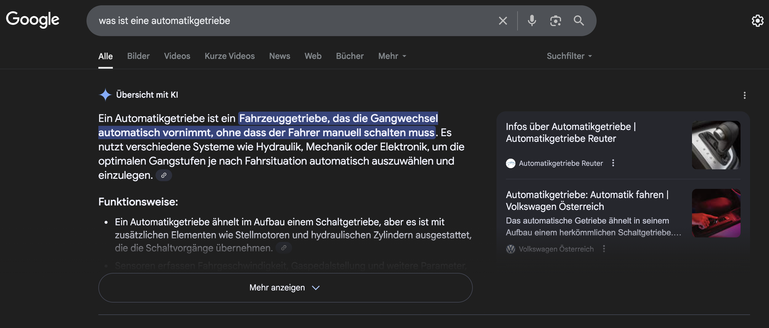 Jetzt kommt eine neue Ebene dazu: eine durch KI erzeugte Zusammenfassung direkt in den Ergebnissen.